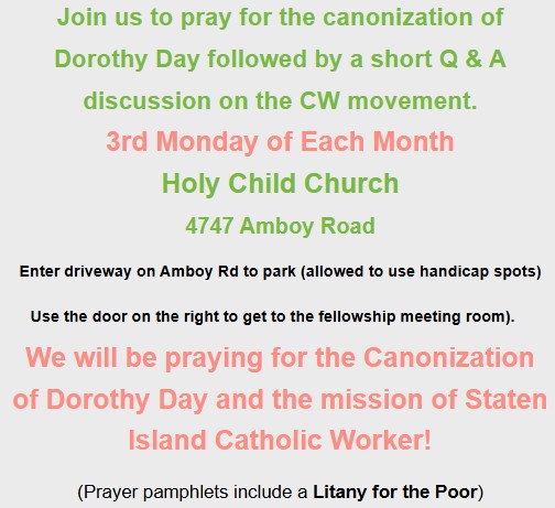 Email us if you would like to volunteer or donate food – SICatholicWorker@gmail.com