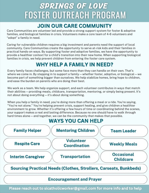 join Springs of love staten island by emailing us at sicatholicworker@gmail.com or Springsoflove2025@gmail.com